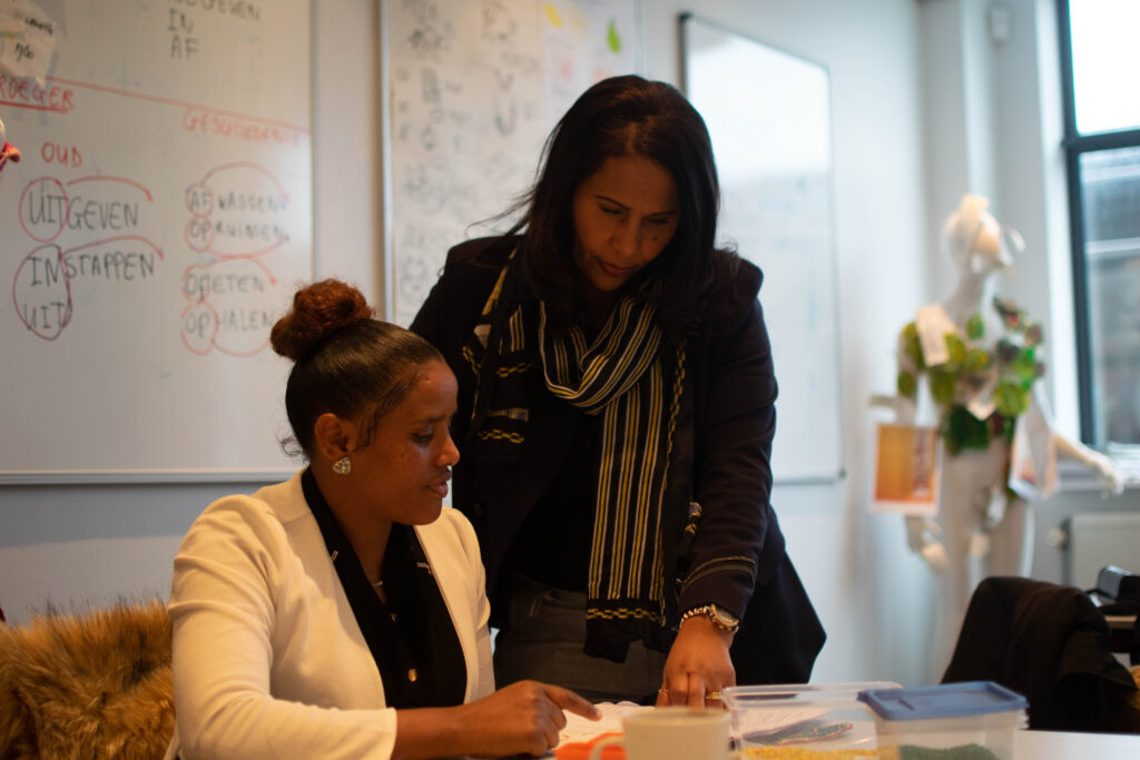 In 2015 begon ik, Yodit, als tolk voor nieuwkomers in Nederland. Tijdens het tolken zag ik dat zij dezelfde uitdagingen hadden als ik dertig jaar geleden, toen ik naar Nederland vluchtte. Ik wilde meer doen dan alleen vertalen – ik wilde echt helpen. Dit bracht me ertoe om de opleiding voor ONA-docent te volgen (Oriëntatie Nederlandse Arbeidsmarkt, nu MAP genoemd). Na jaren niet naar school te zijn geweest, was dit best spannend. Maar het lukte! Zo kwam mijn droom uit om leraar te worden.